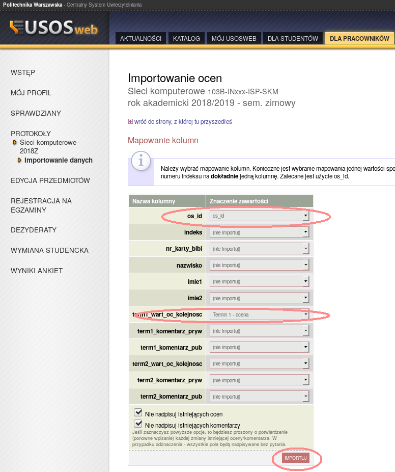 Importowanie ocen do USOS'a