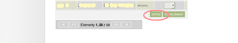 Po przejrzeniu skopiowanych ocen jeśli wszystko wygląda poprawnie mozemy nacisnąć przycisk "ZAPISZ" znajdujący sie na samym dole tabeli. Gdyby wystepowały rozbieżności poważniejsze niż pominięcie ocen osób wymienionych w komunikatach o błędach to należy zrezygnować z zapisu i nacisnąć "COFNIJ ZMIANY".